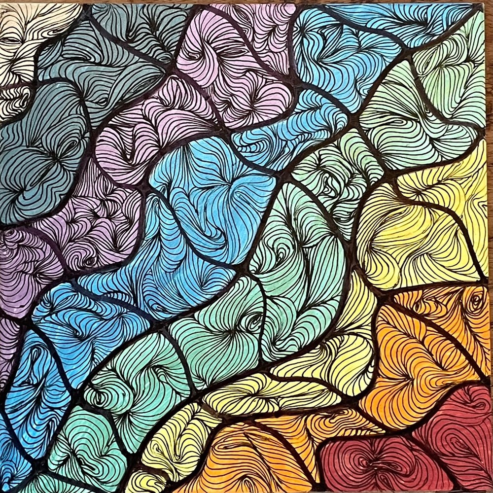 Rainbow-colored meanderings capture the eye and lift the spirit!