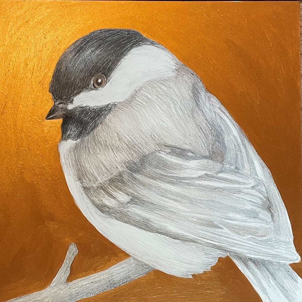 A finch against a gold backdrop.