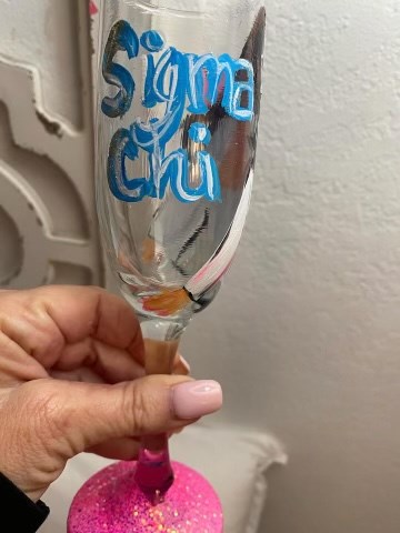 Beautifully hand painted champagne flute made specially for a sigma chi mom!