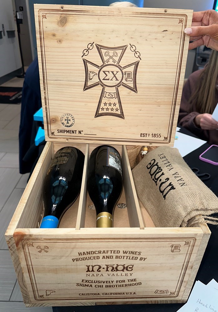 Sigma Chi Wine Crate from Napa, California. 1 bottle of Pinot Noir and 1 bottle of Chardonnay.