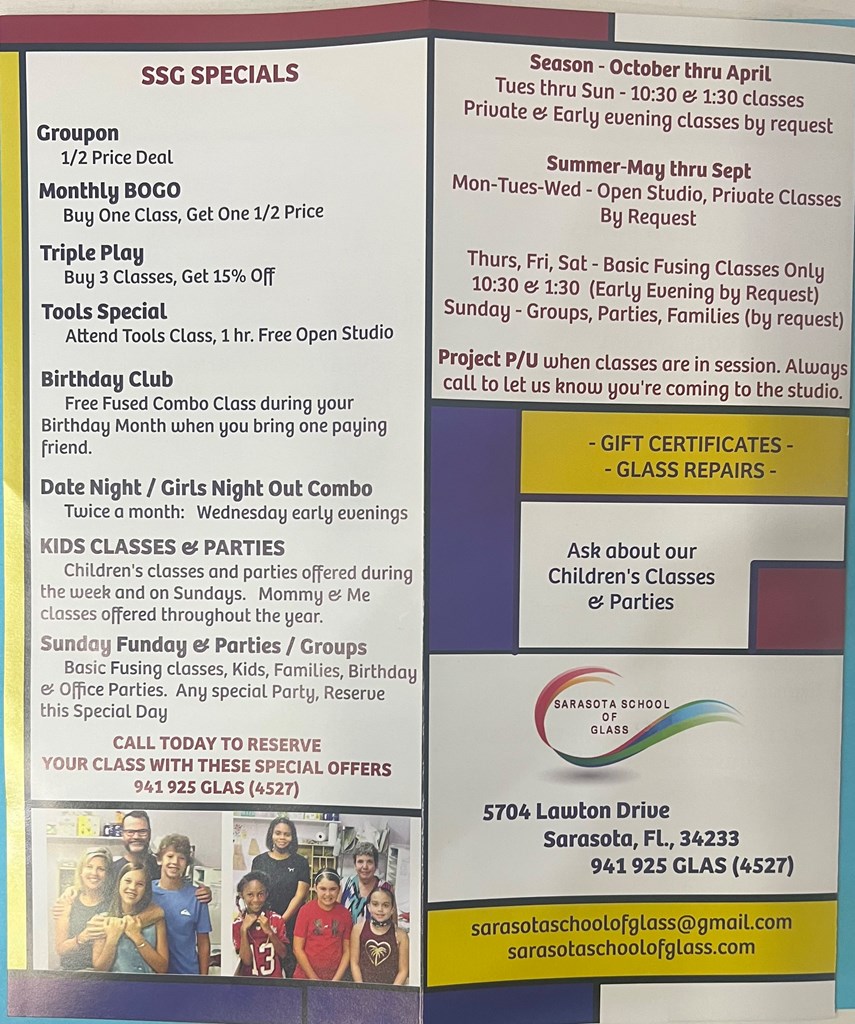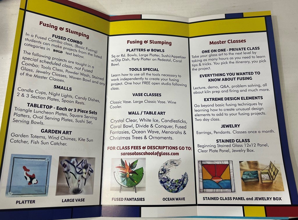 The Sarasota School of Glass offers a range of classes that take you on a journey of discovery into the world of glass. They offer basic fusing classes which provide the perfect introduction to fusing and slumping for those new to the art. Their experienced instructors will guide you through every step ensuring that you learn the skills necessary to create beautiful, functional pieces of fused glass. They can’t wait to share their love of glass with you! * Ms. Kashmira and her mom both have taken classes at this studio! It is such an amazing experience!