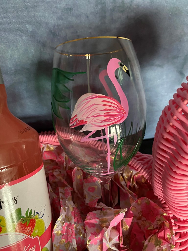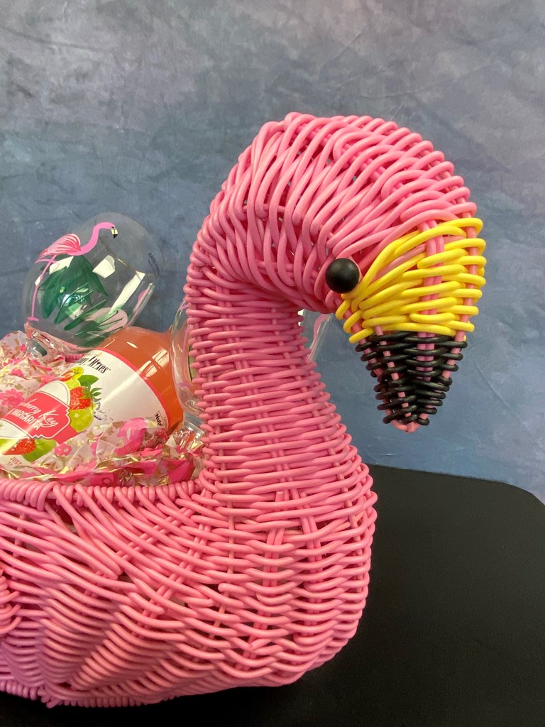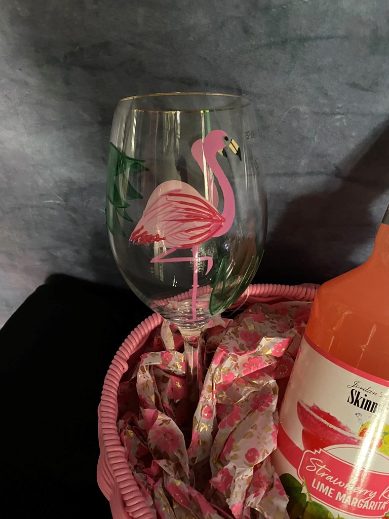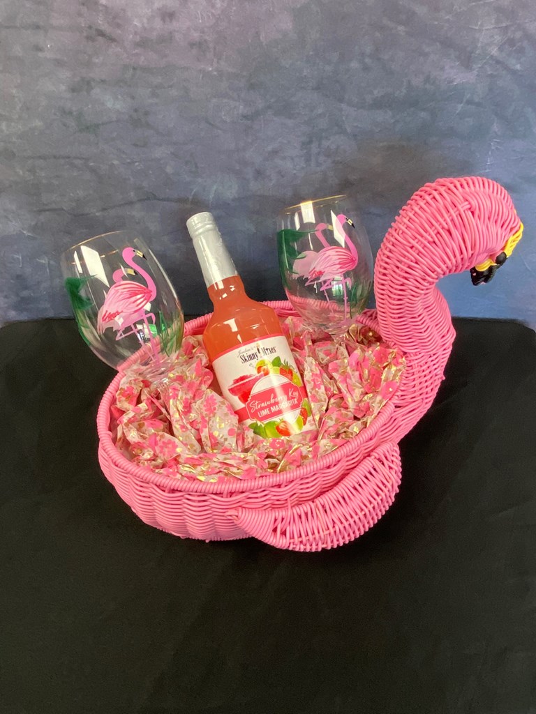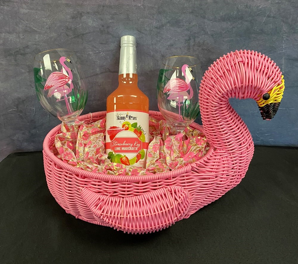The 100 Women Who Care in the MOV are at it again - another happy basket. Now really, who doesn't like flamingos?!?!?! This artistic basket contains: 2 Hand painted Wine Glasses Bottle of Skinny MIxes Strawberry Key Lime Margarita Flamingo Shaped Wicker Basket